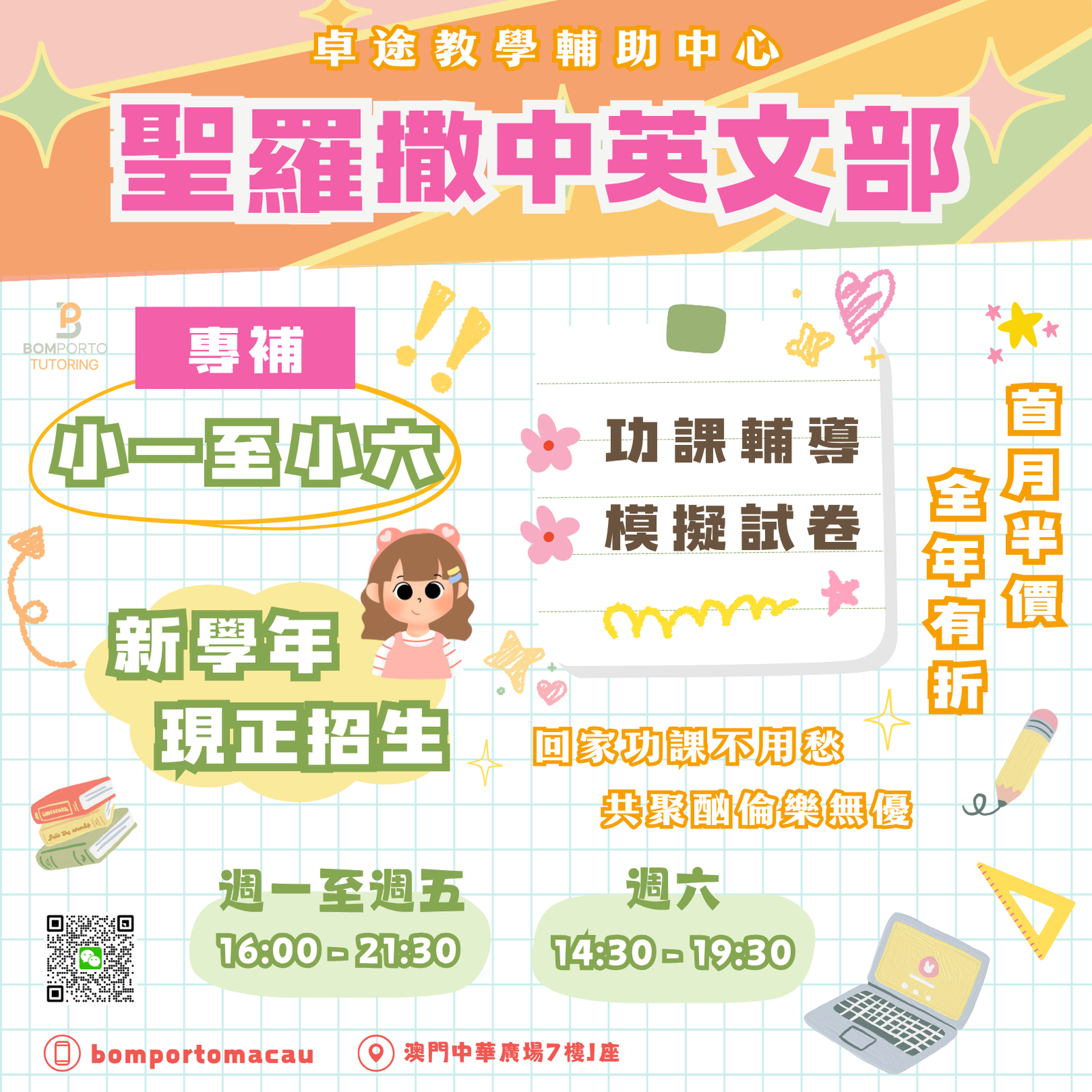 專補聖羅撤中文部和英文部新學年招生|首月半價,全年有折🌟【放學後的功課助力站|家長省心之選】🌟